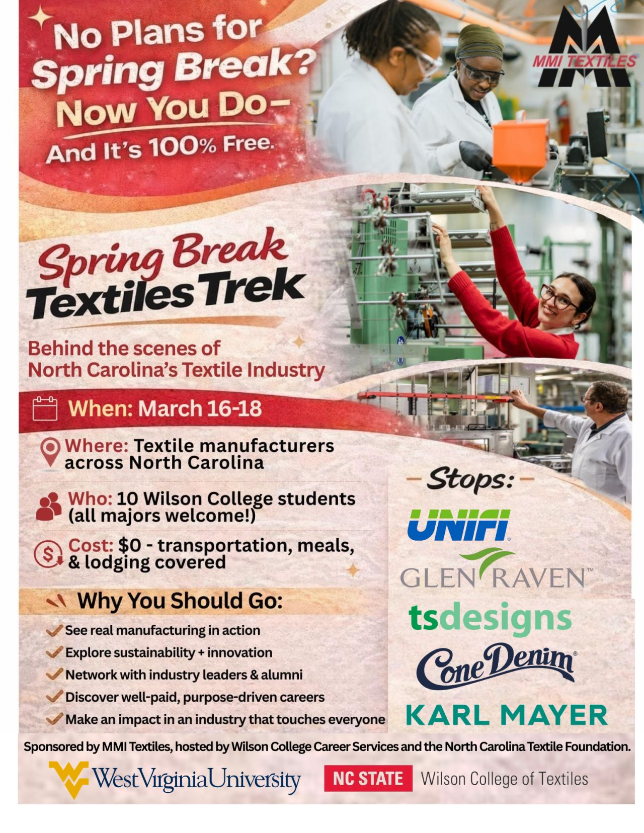 North Carolina State University's Wilson College of Textiles and the North Carolina Textile Foundation will host a free event—the Spring Break Textiles Trek—March 16–18 for students at the Wilson College of Textiles and West Virginia University. The three-day event includes visits to multiple textile manufacturers across North Carolina, including UNIFI® Inc., Glen Raven, KARL MAYER, […]